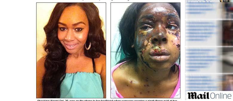Mas o ataque sofrido por Naomi vem intrigando as autoridades britânicas por ter sido praticado por uma mulher usando um niqab, vestimenta típica da religião islâmica que cobre todo o corpo da mulher, deixando à mostra apenas os olhos.